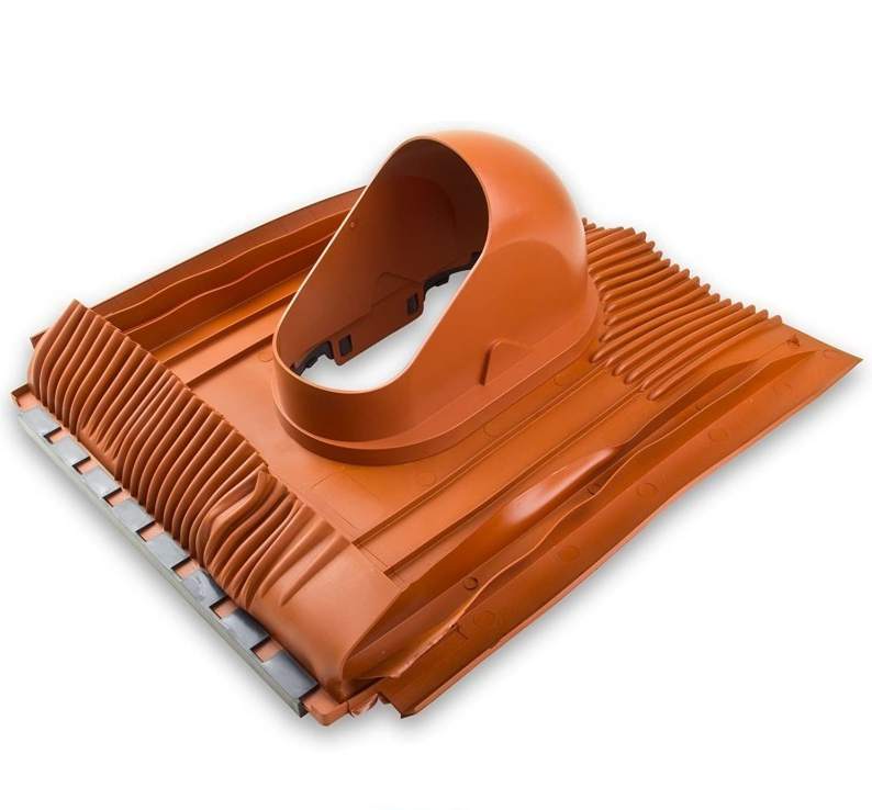 Popis a použití: Venduct® univerzální střešní průchodka s průměrem otvoru 125 mm slouží společně s příslušenstvím pro kompaktní, vodotěsné řešení odvětrávání, anténního prostupu, nebo pro prostupový adaptér odkouření turbokotle. Díky své konstrukci a kombinaci s límcem z měkčeného PVC je vhodná pro všechny typy skládaných krytin a je UV odolný, odolný vůči povětrnostním vlivům, stárnutí a deformaci.