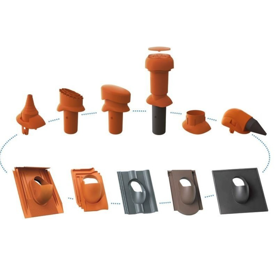 Popis a použití: Základní prostupová taškapro šikmé střechy slouží jako bezpečný a vodotěsný prostup k řešení prostupů o průměru 100 mm pro betonovou střešní krytinu Creaton Heidelberg. Společně s příslušenstvím slouží pro kompaktní, vodotěsné řešení odvětrání kanalizace, odvětrání kuchyní pomocí motorických jednotek, odvětrání koupelen, anténní a satelitní prostup, prostup pro solární systémy nebo pro systém odkouření turbokotle. Materiál-ASA (acrylonitrile styrene acrylate) je termoplast, který vyniká vysokou mechanickou pevností, odolností vůči UV záření a odolností proti vodě. Má také vysokou rozměrovou stabilitu. Jednoduchá a nekomplikovaná prostupovátaška může být použita pro rychlé a bezproblémové provádění průchodů ve střešní konstrukci.