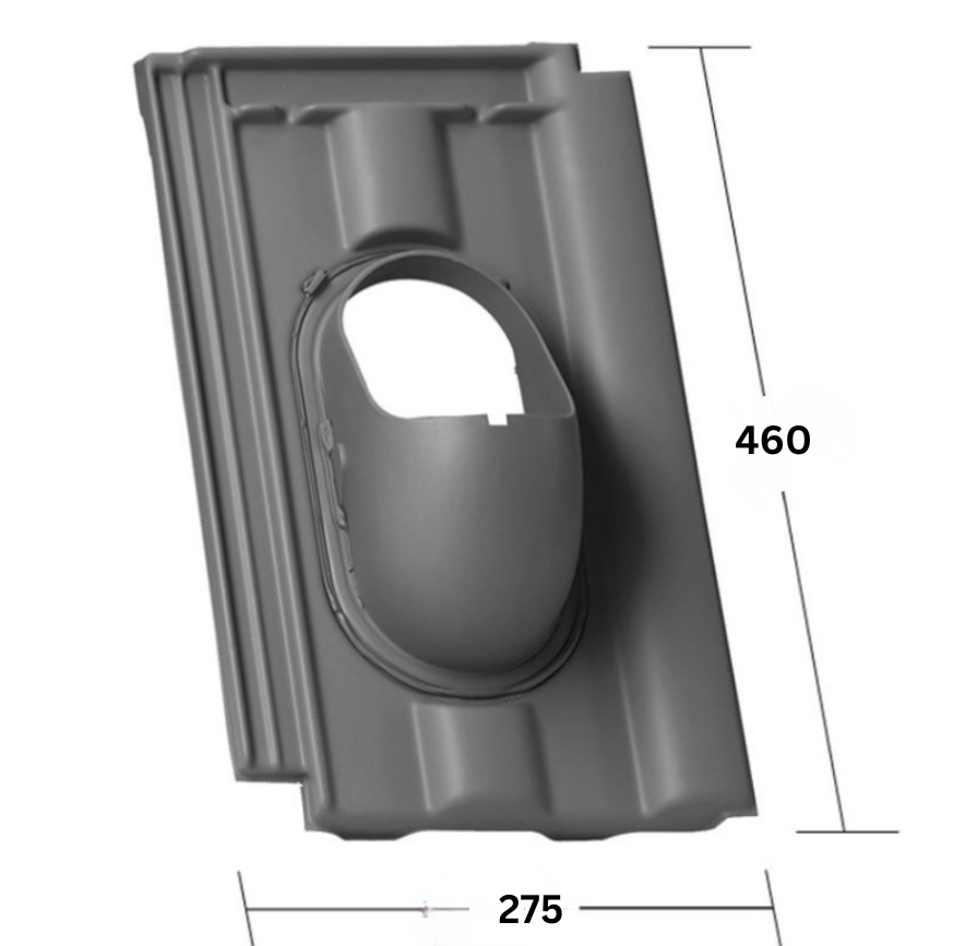 Popis produktu: Základní prostupové tašky jsou vyrobeny podle tvaru a zámku konkrétního typu střešní krytiny, společně s příslušenstvím slouží pro kompaktní, vodotěsné řešení odvětrání, anténní prostup, prostup pro solární systémy nebo pro vývod odkouření turbokotle. Materiál ASA (acrylonitrile styrene acrylate) je termoplast, který vyniká vysokou mechanickou pevností, odolností vůči UV záření, odolností proti vodě a vysokou rozměrovou stabilitou.