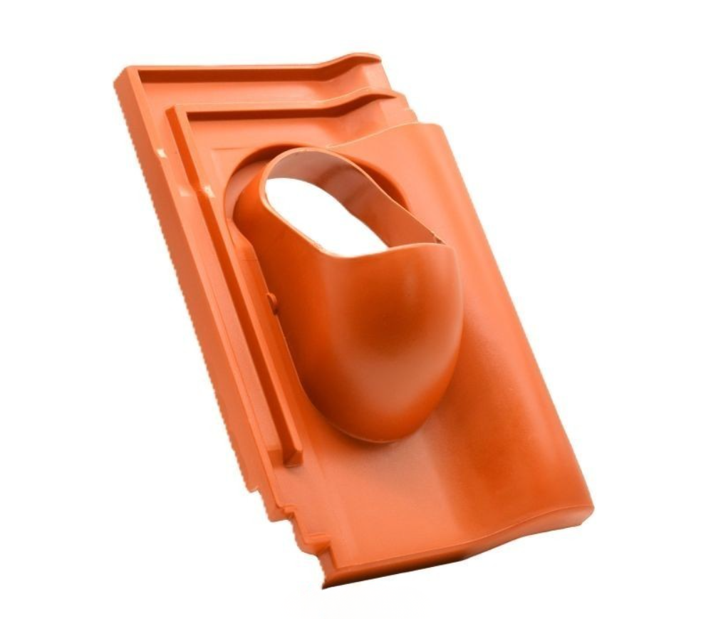Popis a použití: Základní prostupová taškapro šikmé střechy slouží jako bezpečný a vodotěsný prostup k řešení prostupů o průměru 100 mm pro pálenou střešní krytinu Tondach Holand a Jirčanka 13. Společně s příslušenstvím slouží pro kompaktní, vodotěsné řešení odvětrání kanalizace, odvětrání kuchyní pomocí motorických jednotek, odvětrání koupelen, anténní a satelitní prostup, prostup pro solární systémy nebo pro systém odkouření turbokotle. Materiál ASA (acrylonitrilestyrene acrylate) je termoplast, který vyniká vysokou mechanickou pevností, odolností vůči UV záření a odolností proti vodě. Má také vysokou rozměrovou stabilitu. Jednoduchá a nekomplikovaná prostupovátaška může být použita pro rychlé a bezproblémové provádění průchodů ve střešní konstrukci.