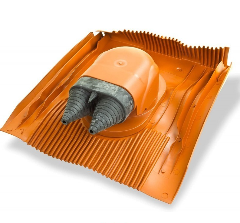 Popis a použití: Univerzální hadicový prostup (montážní sada) zajišťuje prostup pro dvě hadice solárního systému střešním pláštěm. Toto profesionální řešení zaručuje zachování vzduchotěsnosti i vodotěsnosti střešního systému ve sklonu od 16° - 65°. Univerzální základna s otočným nástavcem je vhodná pro většinu typů skládaných krytin. Průměr adaptéru pro napojení hadic je od 10 do 55 mm, součástí je prostup kabelu (např. pro senzor) o průměru 6 mm. Prostup vyniká snadnou a bezpečnou montáží. Produkt je vyroben měkčené PVC odolné vůči UV záření ve dvou barevných provedeních, ASA, EPDM