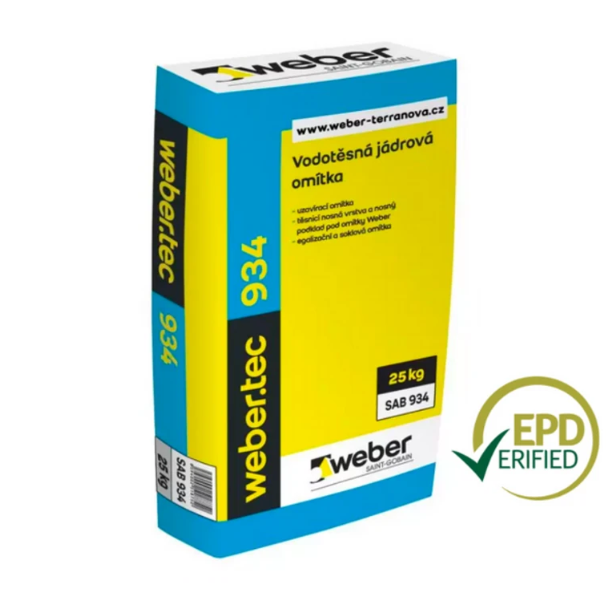 Použití: Weber tec 934 se používá jako vodotěsná podkladní vrstva pod sanační omítky nebo podkladní vrstva pod jádrové omítky, pružné hydroizolační stěrky včetně živičných nebo jako soklová omítka. Maltová směs je odolná síranům a negativnímu tlaku vody. Produkt slouží jako uzavírací omítka, těsnicí nosná vrstva a nosný podklad pod omítky Weber a jako egalizační a soklová omítka.