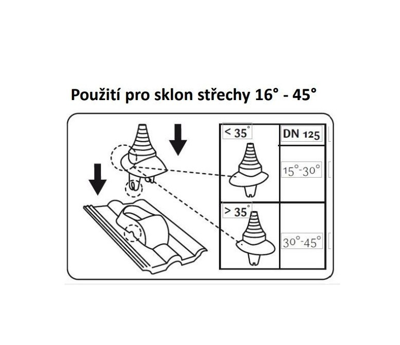 - Sklon střechy: od 16°- 45°dle základní tašky