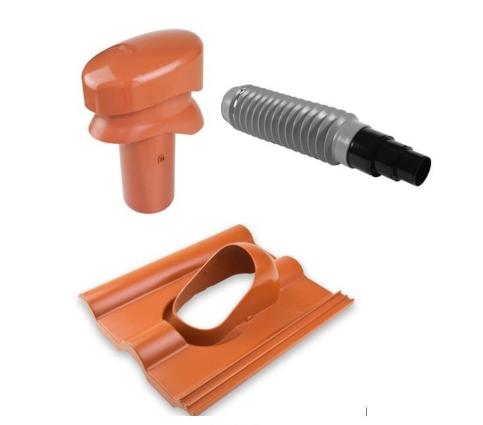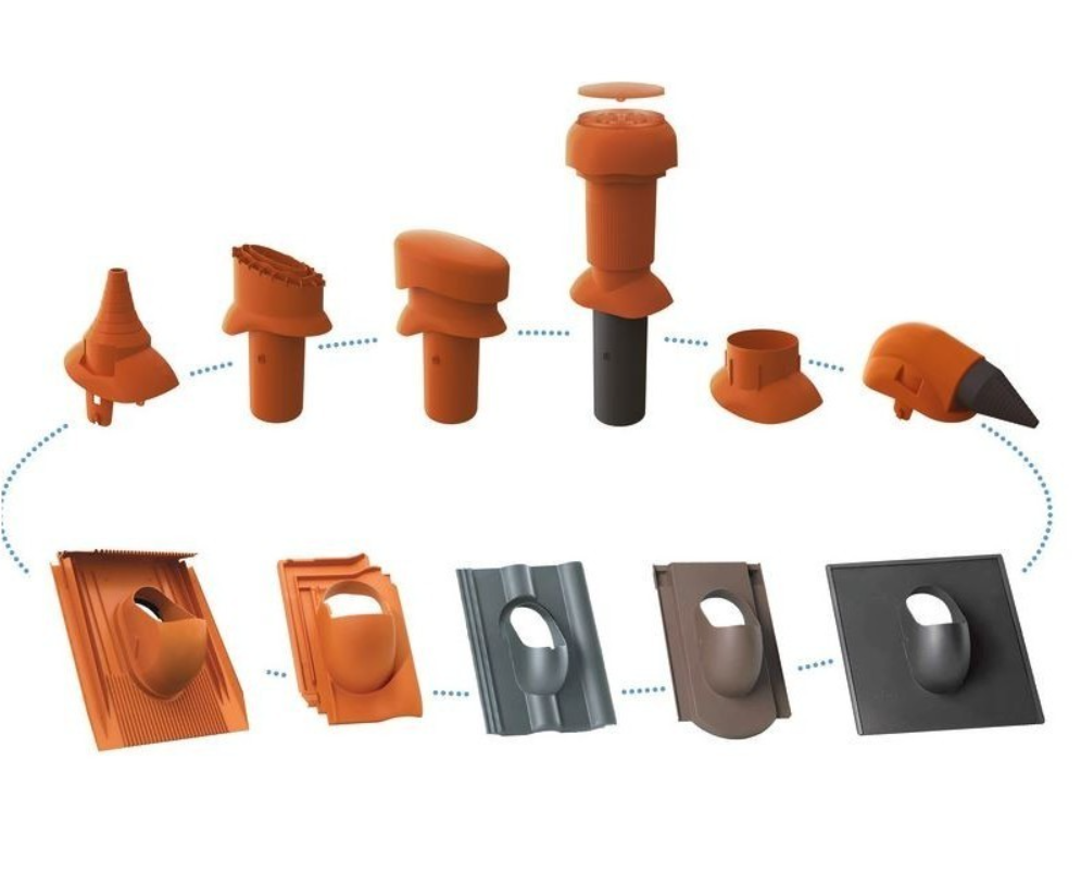 Popis a produkty: Základní prostupová taška pro šikmé střechy slouží jako bezpečný a vodotěsný prostup k řešení prostupů o průměru 100 mm pro betonovou střešní krytinu Besk Betonpres a pro staré typy KMB Beta. Společně s příslušenstvím slouží pro kompaktní, vodotěsné řešení odvětrání kanalizace, odvětrání kuchyní pomocí motorických jednotek, odvětrání koupelen, anténní a satelitní prostup, prostup pro solární systémy nebo pro systém odkouření turbokotle. Jednoduchá a nekomplikovaná prostupová taška může být použita pro rychlé a bezproblémové provádění průchodů ve střešní konstrukci. Materiál - ASA (acrylonitrile styrene acrylate) je termoplast vhodný pro venkovní použití, protože vyniká vysokou mechanickou pevností, odolností vůči UV záření a odolností proti vodě.