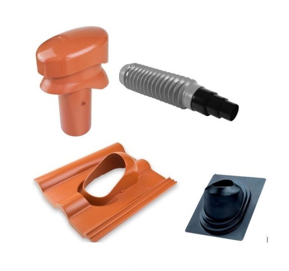 Popis a použití: Střešní prostupy tvarované speciálně pro konkrétní typy betonových krytin jsou systémovou součástí variabilního systému Venduct®, který řeší veškeré požadavky na bezpečný prostup střechou pro odvětrání digestoří, sanitární odvětrání, hadicové a anténní prostupy, kabelové průchodky či vodotěsné napojení odkouření turbokotle. Systém Venduct® používaný po celé Evropě vyniká díky své konstrukci a použitým materiálům svou spolehlivostí z hlediska stability, bezpečnosti, vodotěsnosti a dlouhé životnosti.
