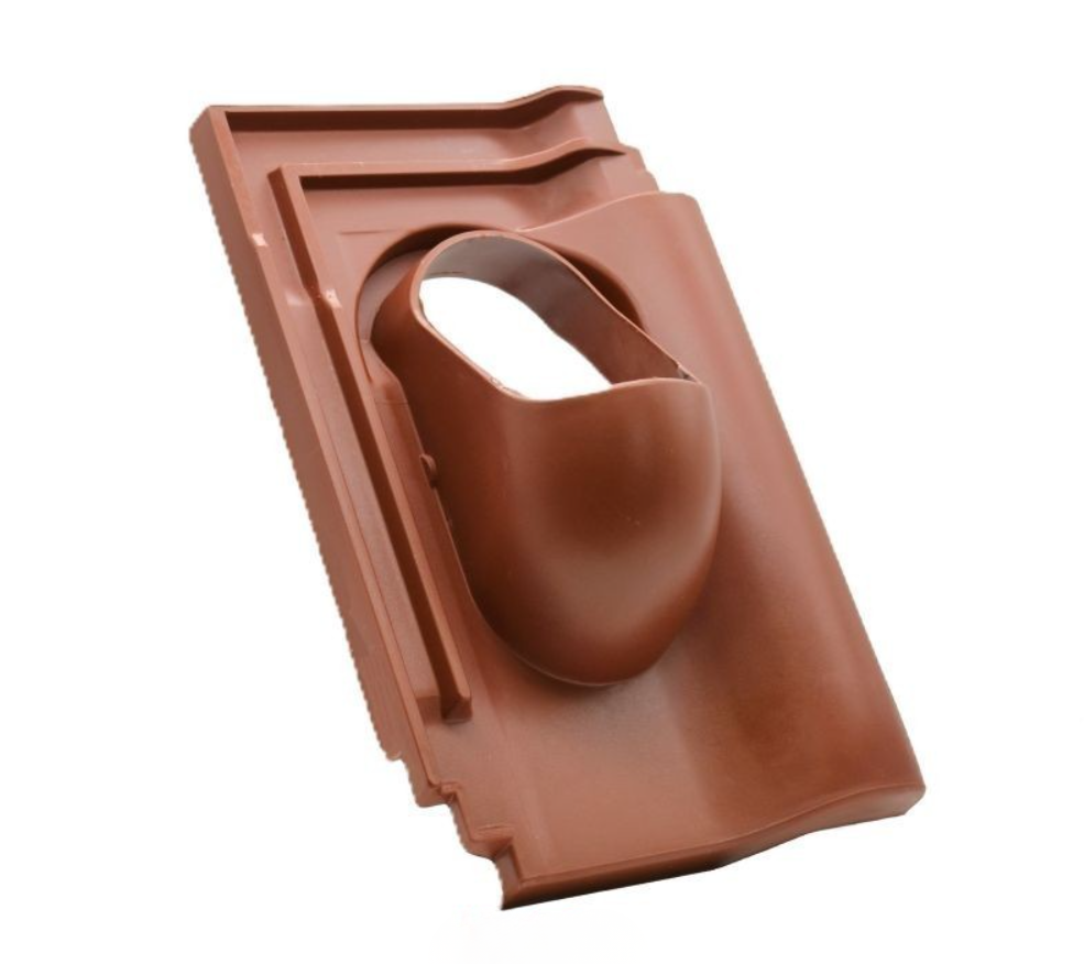 Popis a použití: Základní prostupová taškapro šikmé střechy slouží jako bezpečný a vodotěsný prostup k řešení prostupů o průměru 100 mm pro pálenou střešní krytinu Tondach Holand a Jirčanka 13. Společně s příslušenstvím slouží pro kompaktní, vodotěsné řešení odvětrání kanalizace, odvětrání kuchyní pomocí motorických jednotek, odvětrání koupelen, anténní a satelitní prostup, prostup pro solární systémy nebo pro systém odkouření turbokotle. Materiál ASA (acrylonitrilestyrene acrylate) je termoplast, který vyniká vysokou mechanickou pevností, odolností vůči UV záření a odolností proti vodě. Má také vysokou rozměrovou stabilitu. Jednoduchá a nekomplikovaná prostupovátaška může být použita pro rychlé a bezproblémové provádění průchodů ve střešní konstrukci.