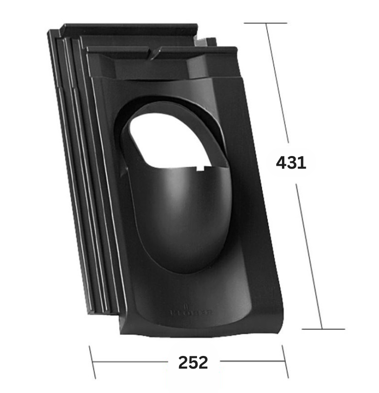 Popis a použití: Základní prostupové tašky jsou vyrobeny podle tvaru a zámku konkrétního typu střešní krytiny, společně s příslušenstvím slouží pro kompaktní, vodotěsné řešení odvětrání, anténní prostup, prostup pro solární systémy nebo pro vývod odkouření turbokotle. Materiál ASA (acrylonitrile styrene acrylate) je termoplast, který vyniká vysokou mechanickou pevností, odolností vůči UV záření, odolností proti vodě a vysokou rozměrovou stabilitou.