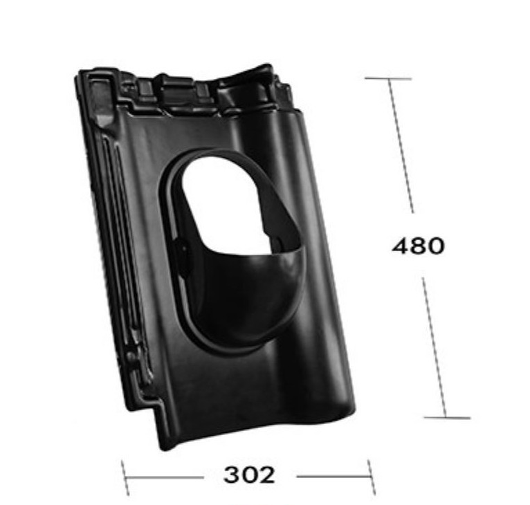 Popis a použití: Základní prostupové tašky jsou vyrobeny podle tvaru a zámku konkrétního typu střešní krytiny, společně s příslušenstvím slouží pro kompaktní, vodotěsné řešení odvětrání, anténní prostup, prostup pro solární systémy nebo pro vývod odkouření turbokotle. Materiál lakovaný ABS (acrylonitrile butadiene styrene) tuhý, houževnatý termoplast s odolný vůči vodě a teplotním výkyvům