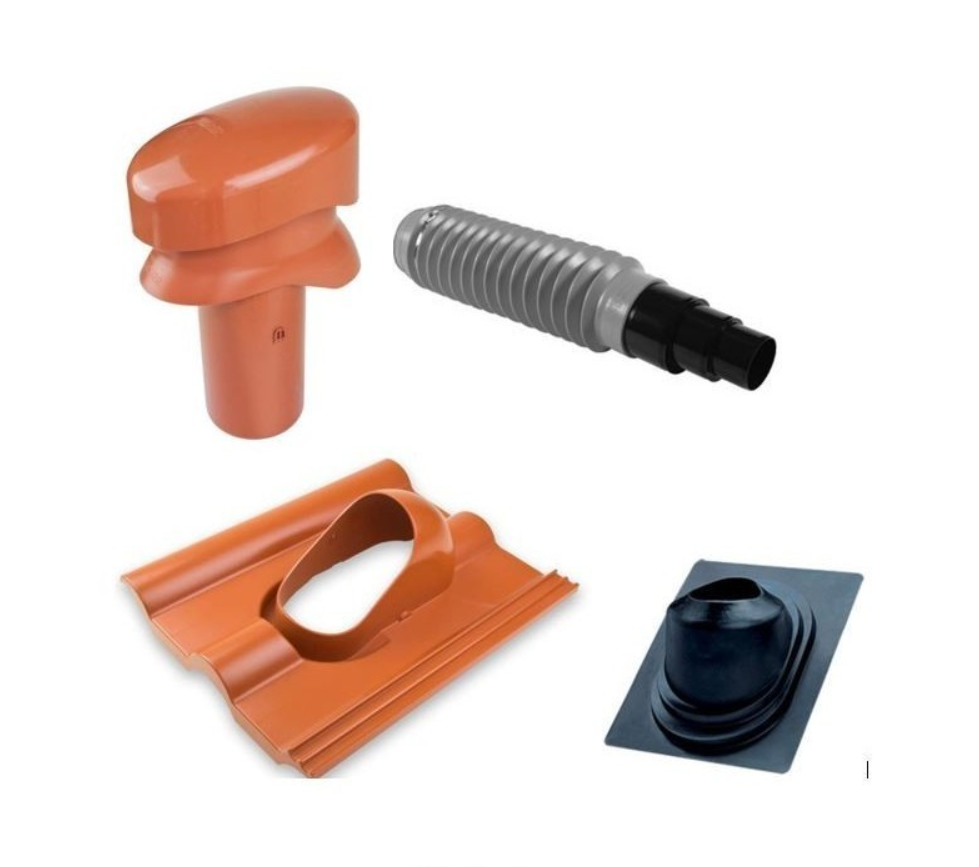 Popis a použití: Základní prostupové tašky jsou vyrobeny podle tvaru a zámku konkrétního typu střešní krytiny, společně s příslušenstvím slouží pro kompaktní, vodotěsné řešení odvětrání, anténní prostup, prostup pro solární systémy nebo pro vývod odkouření turbokotle. Materiál - ASA (acrylonitrile styrene acrylate) je termoplast, který vyniká vysokou mechanickou pevností, odolností vůči UV záření, odolností proti vodě a vysokou rozměrovou stabilitou.