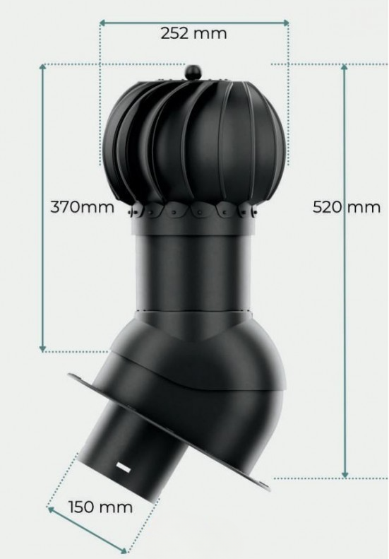 Použití: Rotační odvětrávací set je určen k efektivnímu odvětrání střešních konstrukcí a ventilačních potrubí. Díky rotační hlavici, která vytváří podtlak v potrubí, zajišťuje stabilní a intenzivní proudění vzduchu. Používá se zejména pro odvětrání střešního pláště, sklepních a půdních prostor, digestoří a vzduchotechniky, místností bez oken nebo WC a koupelen. Systém je ideální pro instalaci na šikmé střechy s profilovanou plechovou krytinou, kde pomáhá odvádět vlhkost, pachy a zlepšuje celkovou ventilaci budovy. Napojení na ventilační potrubí je možné pomocí Flex-hadice.
