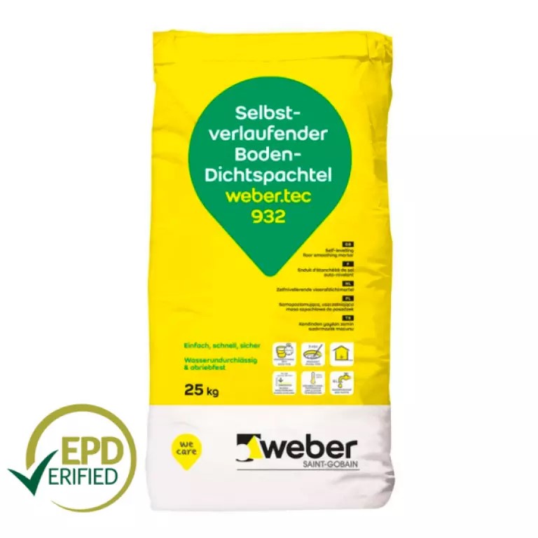 Popis produktu: Webertec 932 je samonivelační, vodonepropustná a rychle tuhnoucí podlahová těsnicí stěrka pro tloušťky vrstev od 5 mm do 30 mm. Webertec 932 je průmyslově vyráběná, cementem vázaná, polymerem modifikovaná a rychle tuhnoucí podlahová těsnicí stěrka se samonivelačními vlastnostmi.