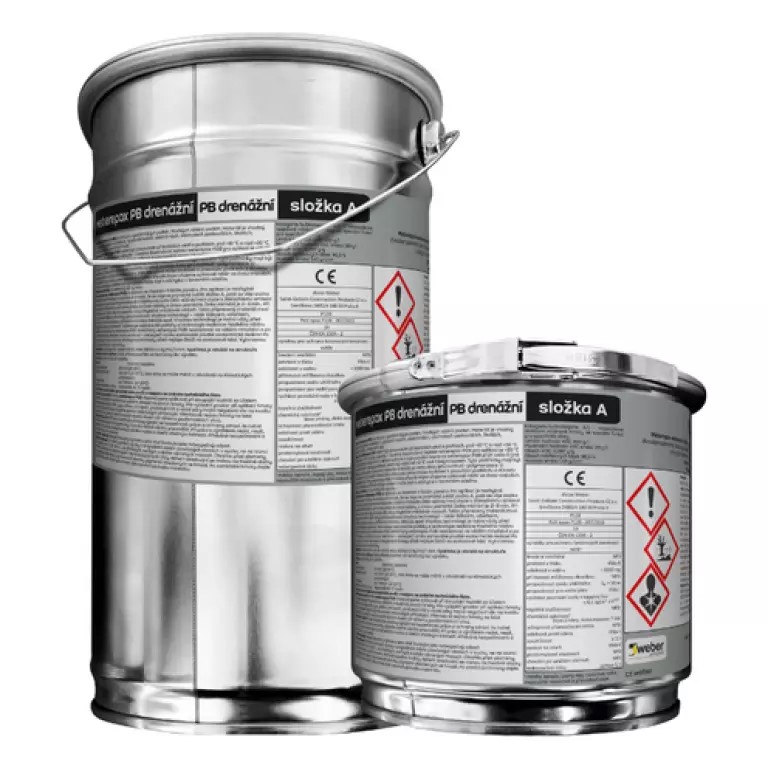 Popis produktu: Weberepox PB drenážní je nízkoviskózní, dvoukomponentní, bezrozpouštědlová hmota na epoxidové bázi s nízkým obsahem VOC, dobrou odolností louhům, kyselinám, posypovým solím, olejům a dalším ropným látkám, bez obsahu nonylfenolu.