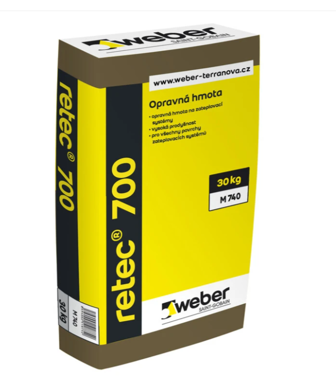 Popis a použití: Webertherm retec 700 je opravná hmota obsahující vlákna určená pro sanaci vnějších tepelně izolačních kompozitních systémů. Produkt je dodáván v suché konzistenci, v 30 kg pytlích. Používá se jako vyrovnávací a armovací opravná hmota při sanacích starých či poškozených zateplovacích systémů. Webertherm retec 700 je určen k renovaci starých či poškozených zateplovacích systémů.